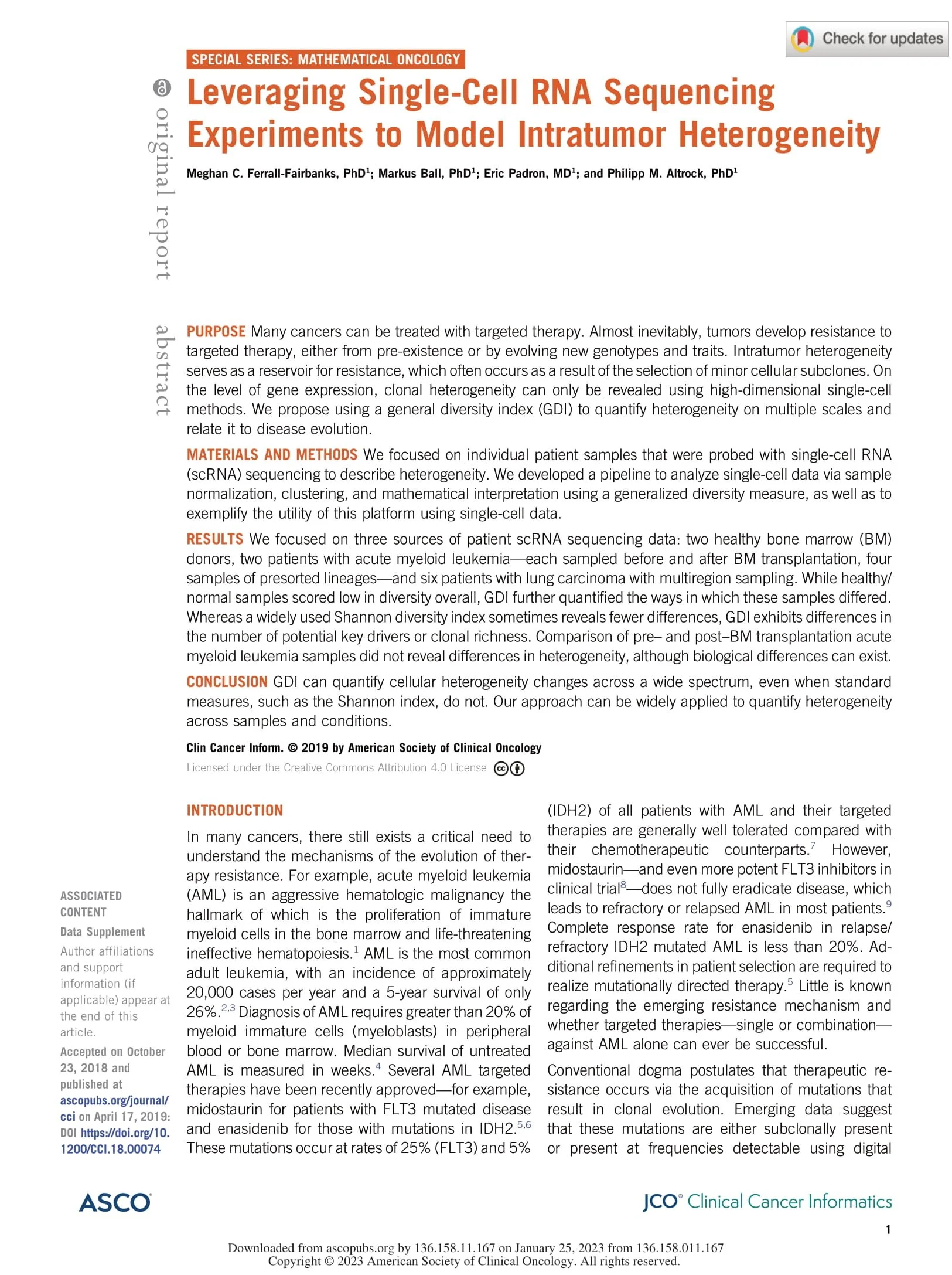 Ferrall-Fairbanks MC, Ball M, Padron E, Altrock PM (2019) JCO Clinical Cancer Informatics